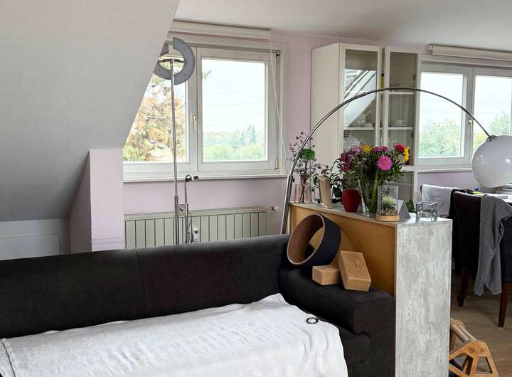 Im Dachgeschoss befindet sich dann die dritte Wohnung. Diese Wohnung verfügt über eine offene Küche, ein Tageslichtbad, einen geräumigen Essbereich, ein Wohnzimmer mit Balkon und ein großes Schlafzimmer - einen Stock tiefer.