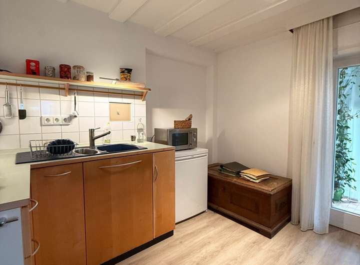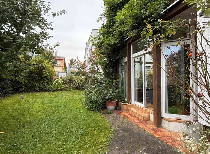 Im Erdgeschoss des Anbaus befindet sich der Einliegerbereich, ebenfalls mit Küche, Bad und kleinem Wintergarten.