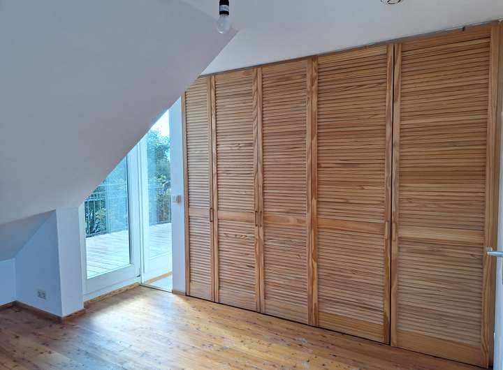 -Schlafzimmer mit praktischem Einbauschrank und Zugang zum Balkon
