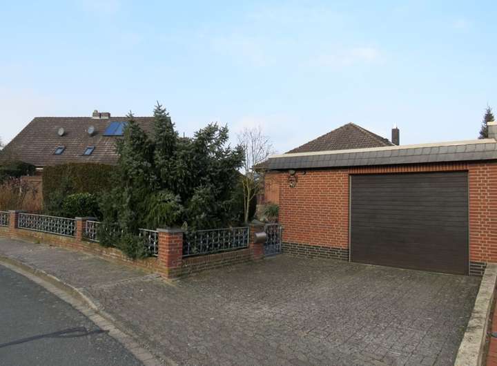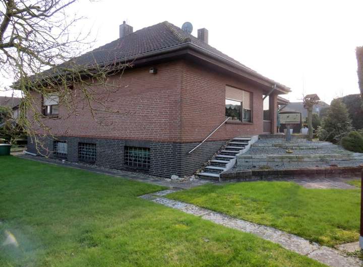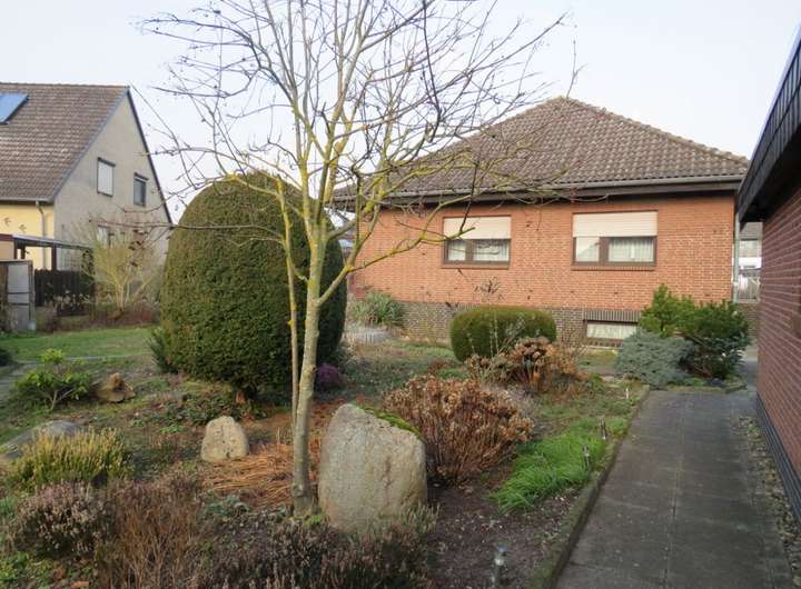 Dieses sehr gepflegte und massiv gebaute Einfamilienhaus im Bungalowstil besticht durch eine gute Raumaufteilung und ein gemütliches Wohnambiente. Das Haus befindet sich auf einem Eigentumsgrundstück in einer verkehrsberuhigten Straße. Auf einer Wohnfläche von ca. 124 m² bietet es ausreichend Platz für eine 2–3-köpfige Familie. Eine große, lichtdurchflutete Wohndiele mit Zugang zum Garten bildet den Mittelpunkt des Familienlebens. Darüber hinaus befinden sich im Erdgeschoss ein geräumiges Wohnzimmer, eine Küche, zwei Schlafzimmer, ein Badezimmer und ein Gäste-WC.