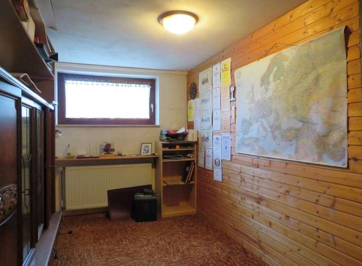 Der Vollkeller wurde teilweise als Wohnkeller ausgebaut und verfügt über Tageslichtfenster. Hier stehen Ihnen ein Partyraum, ein Büro, ein Gästezimmer, ein Anschlussraum, ein Wirtschaftsraum sowie ein Werkstattraum zur Verfügung. Weiterhin befindet sich im Keller die Heizungsanlage und ein Zugang zum Garten.