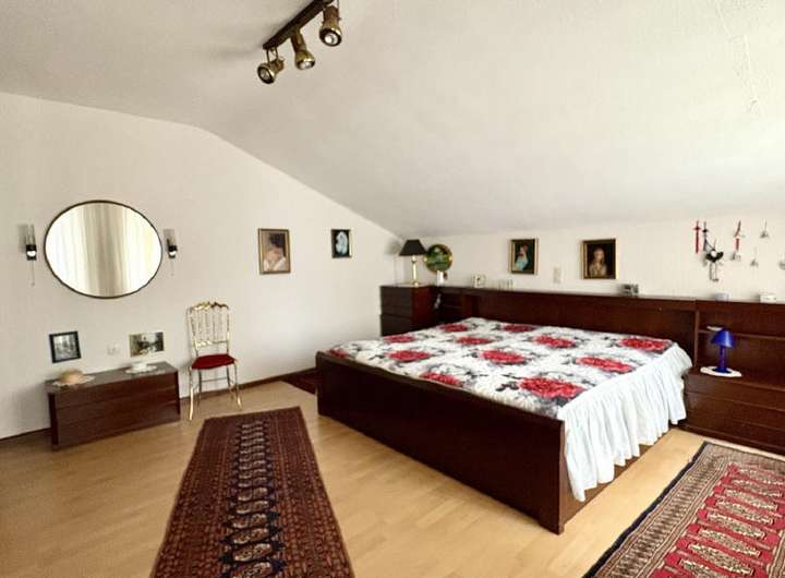 Das Haus besticht durch eine warme, familienfreundliche Atmosphäre. Die Einliegerwohnung bietet flexible Nutzungsmöglichkeiten als eigener Wohnbereich für Familie oder Gäste oder als eigenständige kleine Gewerbeeinheit. Die moderne Einbauküche, das zeitlose Bad mit bodentiefer Dusche und der Kaminofen im Wohnbereich schaffen eine angenehme Kombination aus Funktionalität und Gemütlichkeit. Die Fenster aus dem Jahr 2000 sorgen für gute Wärme- und Schalldämmung, während die neuwertige Gas-Heizung von 2022 eine zukunftsorientierte Versorgung sicherstellt. Außen laden Terrasse und Balkon mit Südausrichtung zum Verweilen ein, der Garten mit Freisitz und Gartenlaube bietet Raum für Entspannung und Freizeitaktivitäten. Eine Garage und zusätzliche Stellplätze sowie ein Treppenlift, der bei Bedarf ausgebaut werden kann, runden das Angebot ab.