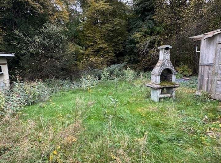 Auf dem Gelände stehen ein älteres Ferienhaus (ca. 126 m²), eine Scheune und eine Garage. Die Gebäude sind in die Jahre gekommen, können aber – mit handwerklichem Geschick und einem Holzofen – weiterhin genutzt werden. Wer auf modernen Standard verzichten kann, schafft sich hier ein einfaches, charmantes Ferienhaus mitten in der Natur.