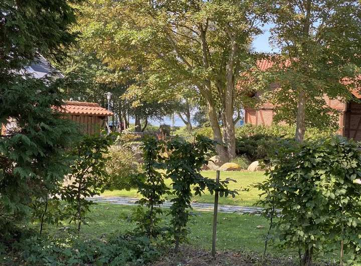 Zwischen dem ca. 732 qm großen Gartengrundstück des Ferienhauses und dem Wasser liegen nur wenige Meter. Der Zugang zum Wasser ist seicht und sandig, so dass auch Kinder hier wunderbar baden können. Auch die kilometerlangen Sandstrände in der näheren Umgebung sind in wenigen Autominuten bequem zu erreichen.