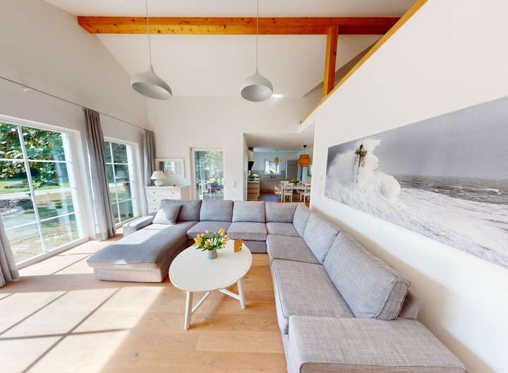 Das Ferienhaus wurde im skandinavirschen Baustil erbaut und ist von innen ebenso komfortabel wie unverwechselbar.