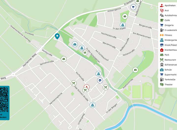 • Nähe zum Wald, Bushaltestelle „Spitzenstraße“ (Linie 28/29) fußläufig in ca. 7 Minuten
