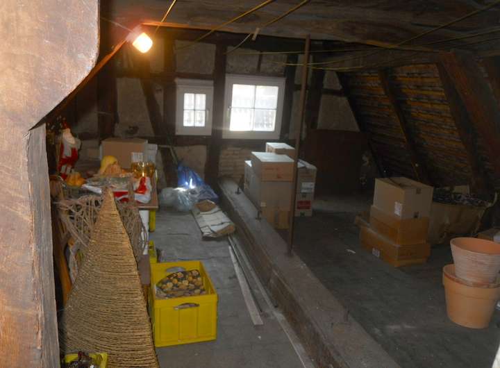 Eindrucksvolles Fachwerkhaus als Einzeldenkmal. 87,83 m² große Erdgeschosswohnung mit 3 Zimmern, neuem Bad und großartiger sonniger Terrasse, im Obergeschoss 87,31 m² große 3 Zimmer-Wohnung. Gewerbeeinheit 47,74 m² und 31,02 m², Wohnungen könnten entsprechend vergrößert werden. Dachgeschoß als Ausbaureserve, war bis in den 50er Jahren eine weitere Wohnung.