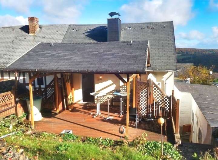 Über einige wenige Stufen gelangen Sie zum überdachten Eingangsbereich und betreten hier den Flurbereich des Hauses. Von hier aus erreichen Sie das Schlafzimmer mit direkter Verbindung zu einem alten Küchenbereich, der auch ideal als begehbarer Kleiderschrank oder Hobbyzimmer genutzt werden könnte. Ebenfalls vom Flur aus steuern Sie das moderne Tageslichtbad mit Dusche an. Das Obergeschoss, zu erreichen über eine massive Steintreppe, wartet zunächst mit einer voll eingerichteten und modernen Küche auf. Von hier aus gelangen Sie dann in den geräumigen Wohn- u. Esszimmerbereich, von dem aus Sie wiederum auch den überdachten Terrassenbereich hinter dem Haus betreten und in Ruhe die Aussicht auf Ihr Grundstück genießen können. Weiterhin ist das Dachgeschoss komplett ausgebaut, sodass sich auch dieser Bereich ideal als Schlaf- oder Kinderzimmer anbietet. Das Haus ist teilunterkellert und bietet Ihnen hier auch Stauraum.