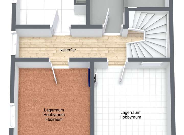 • Zwei Lager-/Hobby-/Flexräume mit Tageslicht und Wandheizkörpern, ein Raum davon gefliest, ein Raum mit Korkboden