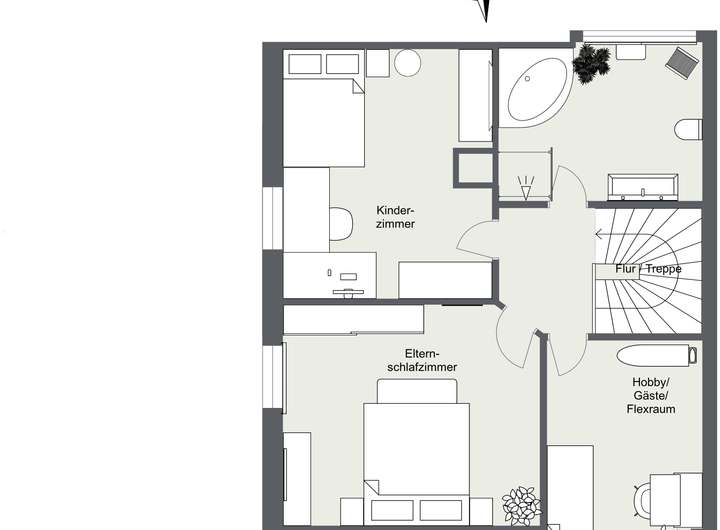 • Ein weiterer Hobby-/Flex-/Gäste-/Schlafraum mit Gaube und Doppelfenster Richtung Süden