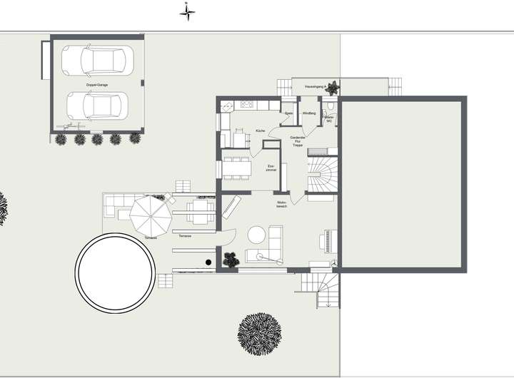Durch die Lage entsteht eine private, vom Straßenbereich abgewandte Wohnsituation.