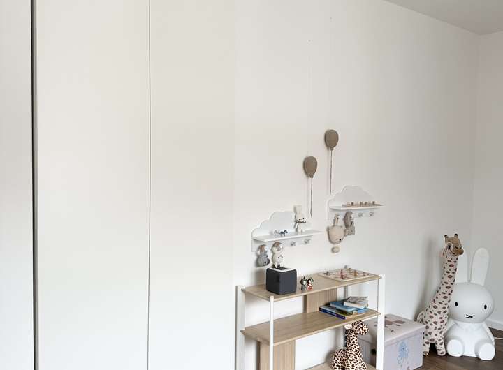 Im Obergeschoss befinden sich das Hauptschlafzimmer, zwei Kinderzimmer sowie das Hauptbad. Im Erdgeschoss liegen die offene Küche mit Wohn- und Essbereich, ein Gäste-WC, der Hausanschlussraum sowie ein zusätzliches Spiel- oder Gästezimmer.