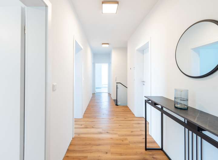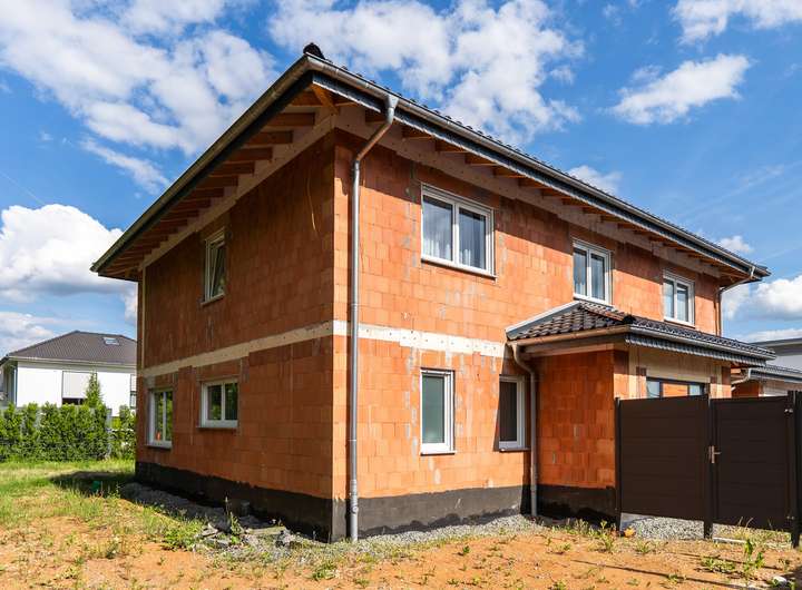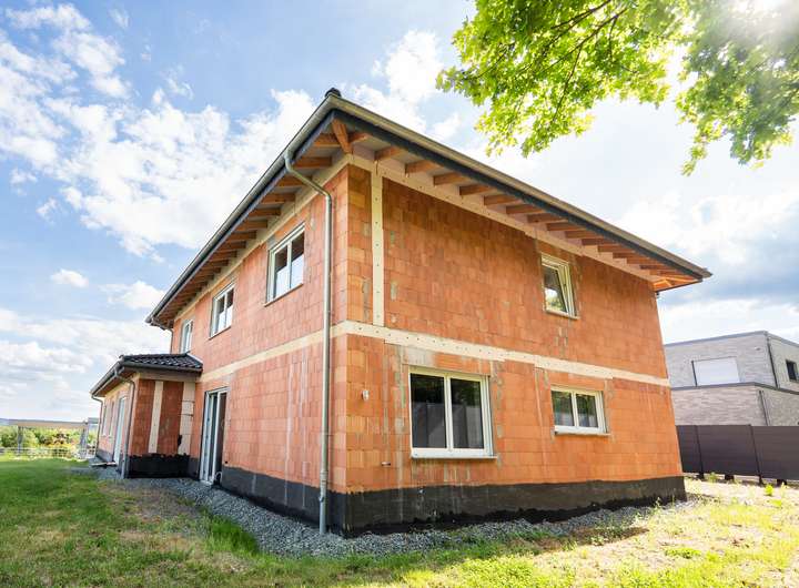 Die Fertigstellung der Hausfassade, der Einbau des Garagentors sowie die Gestaltung des Parkplatzbereichs vor dem Haus stehen noch aus. Diese Arbeiten bieten Ihnen die Möglichkeit, das äußere Erscheinungsbild nach Ihren eigenen Vorstellungen zu gestalten.