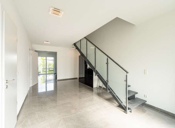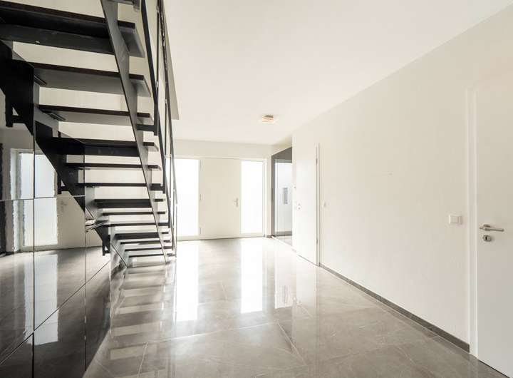 - Fliesenböden, große Fensterflächen mit Rollläden