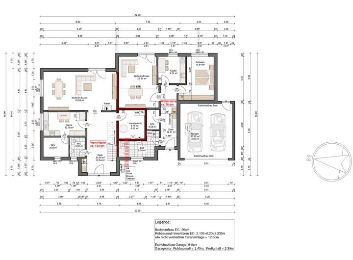 - Hauptwohnhaus ca. 176 m² mit Gemeinschaftsfläche von ca. 6m² , Einliegerwohnung ca. 77 m²