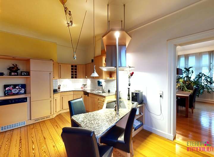 • hochwertig ausgestattete Küche mit angrenzendem Esszimmer und Loggia