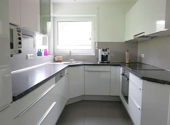 Die komplett ausgestattete Küche ist mit wenigen Schritten vom Essplatz aus erreichbar.