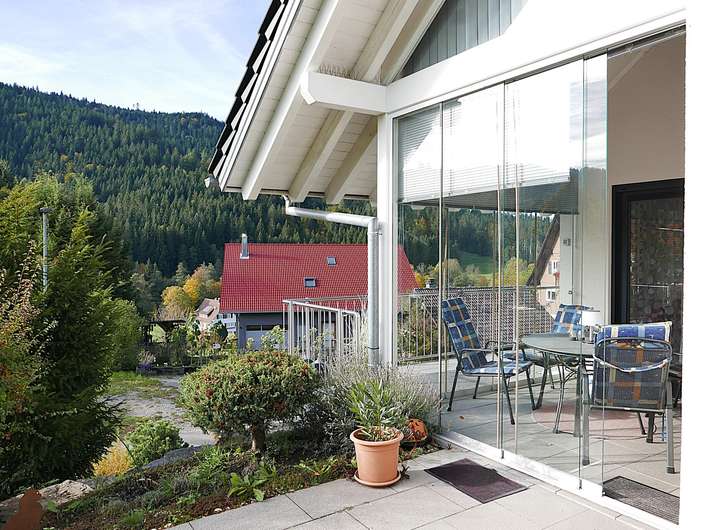 - Windschutz aus Glas am Sitzplatz (Terrasse)