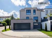 Dieses moderne Haus überzeugt durch seine klare Architektur und optimale Nutzung der Hanglage. Große Fensterflächen und offene Räume schaffen ein helles, großzügiges Wohngefühl.