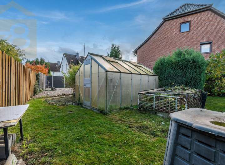 Der gepflegte Außenbereich lädt zum Verweilen ein. Neben einer ca. 20 m² großen Terrasse, die den idealen Ort für entspannte Stunden im Freien bietet, verfügt der Garten über ein Gewächshaus. Der Zaun wurde 2021 erneuert.