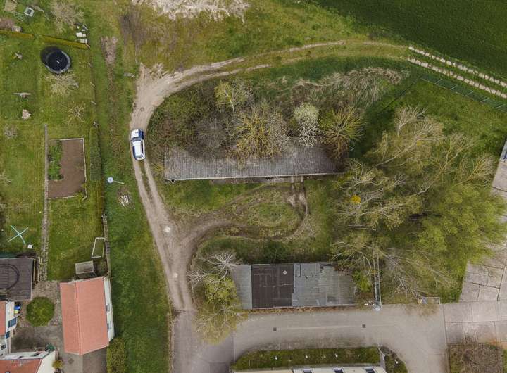 Derzeit ist das Grundstück mit zwei Reihen massiver Garagen bebaut. Insgesamt befinden sich 15 Garagen auf dem Areal, von denen aktuell 7 vermietet sind. Alle Garagen verfügen über zweiflügelige Metall Tore. Die Gesamtfläche der Garagen wird mangels exaktem Aufmaß auf ca. 270 m² geschätzt.