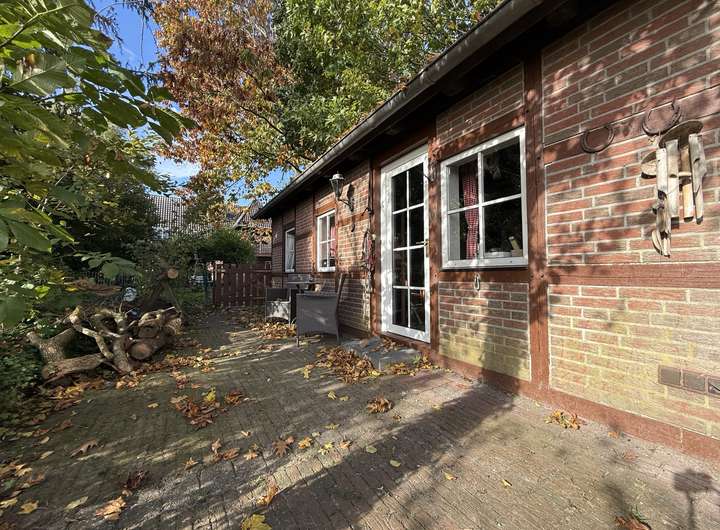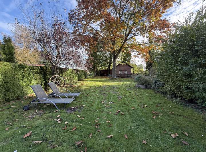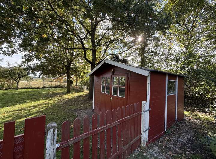 Auf dem rückwärtigen Grundstück befindet sich ein massiv errichtetes Fachwerkgebäude (Gartenhaus) mit Tondachziegeln, Außenklinkerfassade, Sprossenfenstern mit Isolierverglasung, Holzverkleidung in den Dachschrägen und Klinkerfußboden. Ergänzt wird die Ausstattung durch eine Zisterne mit Pumpstation zur Regenwassernutzung sowie eine umfangreiche Hofpflasterung.