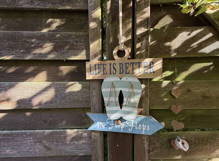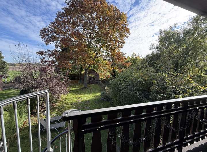 Die Außenanlagen sind ebenso liebevoll gestaltet: Eine geschützt liegende, überdachte Gartenterrasse hinter dem Haus lädt zum Entspannen ein und bietet einen herrlichen Blick in die Gartenanlage und angrenzenden Ländereien.