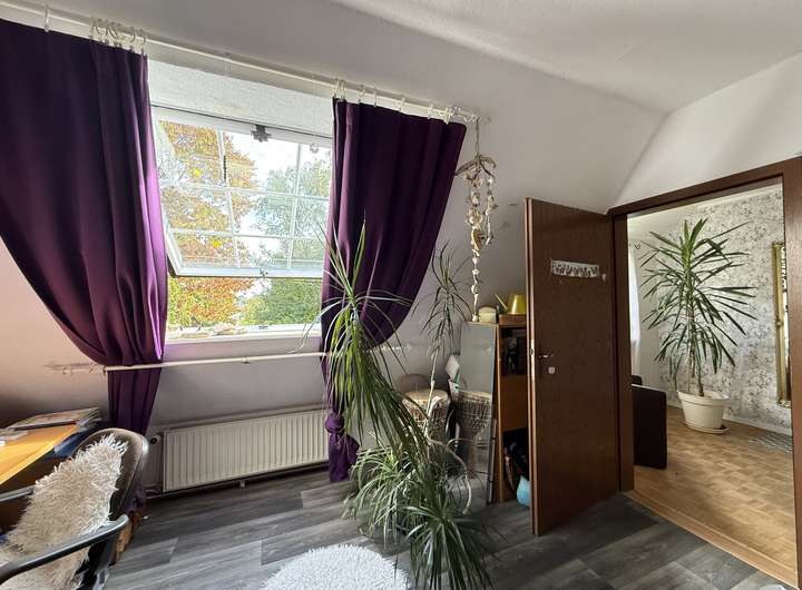 Das linke Haus wurde ebenfalls in massiver Bauweise errichtet. Es profitiert von einer attraktiven Südostlage und erfüllt alle baurechtlichen Voraussetzungen für eine gewerbliche Nutzung. In der Vergangenheit wurde dieser Gebäudeteil unter anderem als Ergotherapiepraxis genutzt, wodurch sich vielfältige Nutzungsmöglichkeiten ergeben – etwa als Praxis, Büro oder separate Wohneinheit.