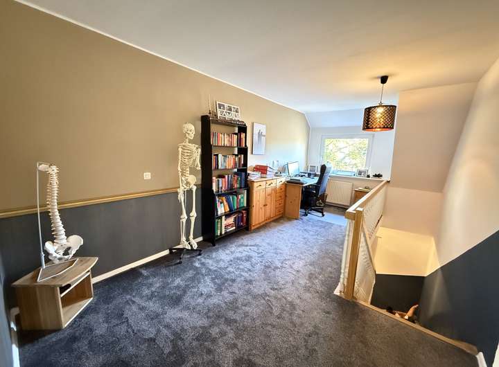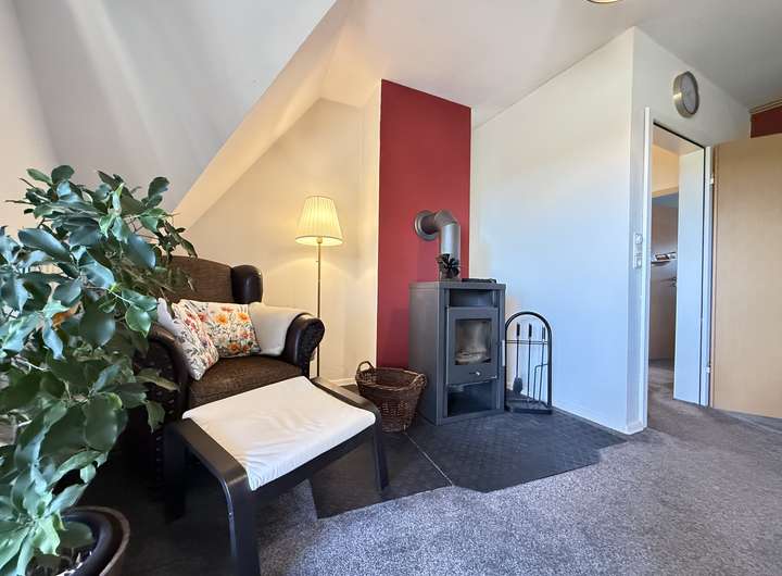 Ein Kaminanschluss im oberen Wohnbereich sorgt für zusätzliche Gemütlichkeit.