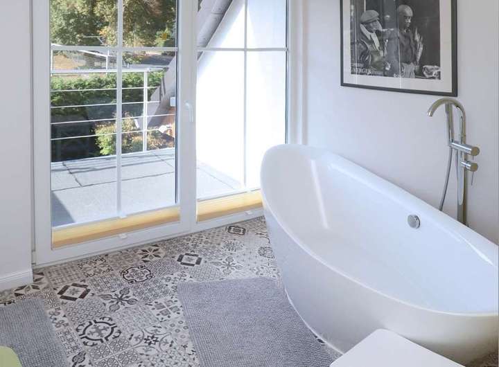 • Neuwertiges Tageslichtbadezimmer mit Badewanne im DG, im EG altersgerechtes Duschbad