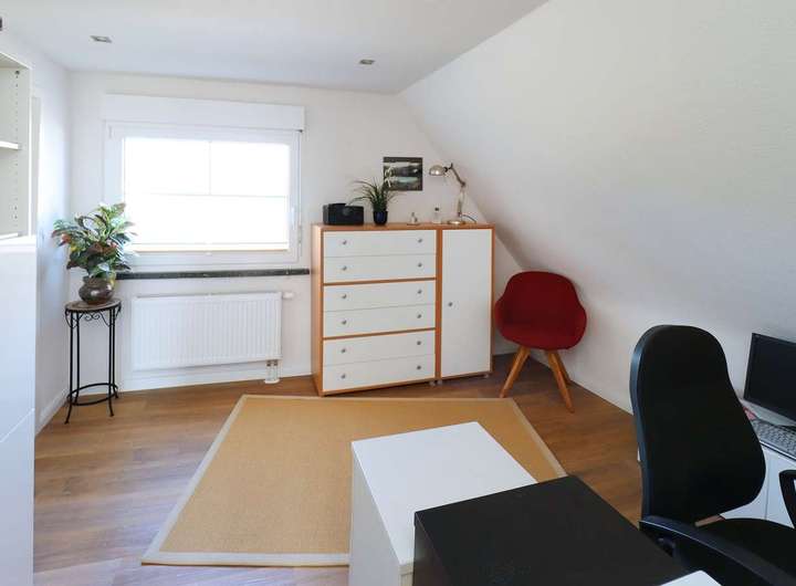 Das ausgebaute Dachgeschoss bietet ein weiteres Schlafzimmer, das ideal als Gästezimmer, Elternschlafzimmer oder zusätzlicher Rückzugsort genutzt werden kann.