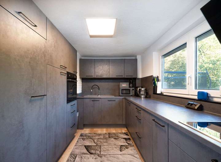 Die Küche wurde 2021 für rund 10.000 Euro vollständig erneuert und bietet moderne Geräte sowie ein durchdachtes Design.