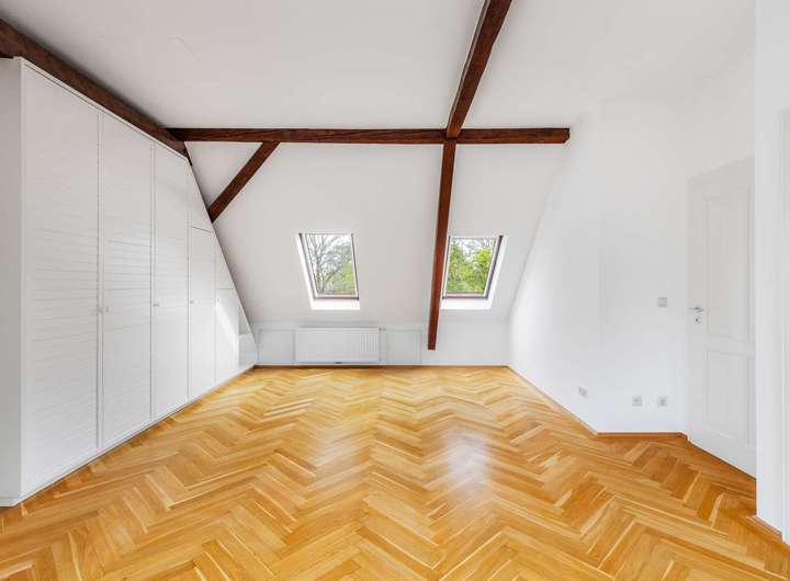 Das Stadthaus wurde im Lauf der Jahre modernisiert und bezaubert mit Fischgrätparkett, stilvollen weißen Kassettentüren und einer original erhaltenen Jugendstil-Treppenbrüstung. So entstand im Herzen der Villenkolonie II ein geräumiges Familiendomizil mit außergewöhnlichem Wohlfühlambiente. Die Mietdauer ist auf 6 bis 10 Monate befristet.