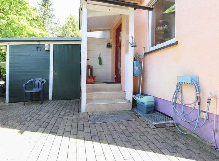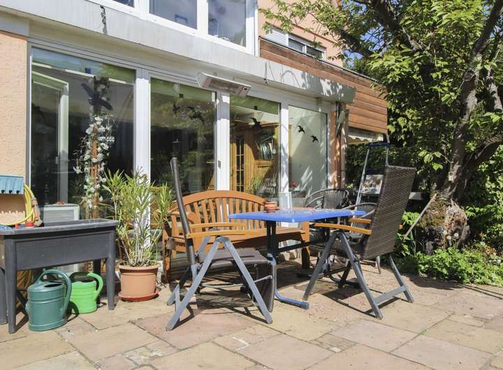 Im Außenbereich erwartet Sie neben einem Wintergarten ein liebevoll angelegter Garten auf einem insgesamt ca. 250 m² großen Grundstück. Die angeschlossene Terrasse bietet zusätzlichen Raum für erholsame Stunden im Freien. Für weiteren Stauraum steht Ihnen ein unterkellerter Bereich zur Verfügung. Besonders hervorzuheben ist hier der aktuell als Hobbyraum genutzte Bereich, in dem ein vollständig ausgestattetes Einzimmer-Apartment integriert wurde. Dieser Bereich zählt nicht zur offiziellen Wohnfläche, stellt jedoch eine attraktive Möglichkeit dar, sich zurückzuziehen oder das Raumangebot flexibel zu erweitern.