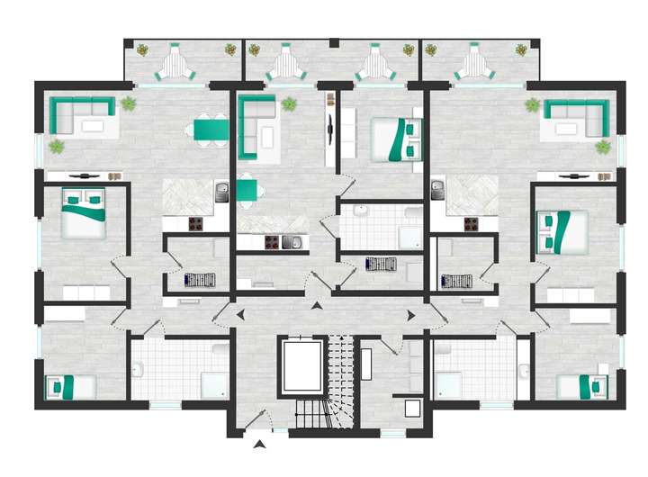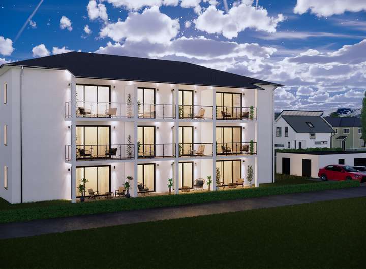 Geplant ist ein 3-geschossiges Mehrfamilienhaus in massiver Bauweise mit jeweils drei Wohneinheiten pro Etage. Die Wohnungen verfügen über Terrassen im Erdgeschoss sowie Balkone in den Obergeschossen. Ein Personenaufzug sorgt für barrierefreie Erschließung aller Etagen.