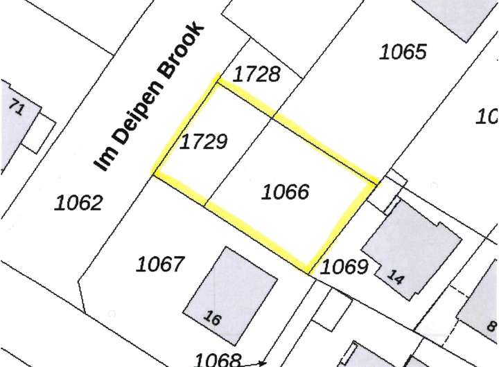 Das Grundstück bietet beste Voraussetzungen für den Bau eines modernen Einfamilien- oder Doppelhauses mit Garten. Die Zuwegung erfolgt über die Straße „Im Deipen Brook“, wo aktuell der Umbau der Parkplätze zur privaten Zufahrt vorgesehen ist. Das wurde mündlich schon vorab mit dem Bauamt besprochen.