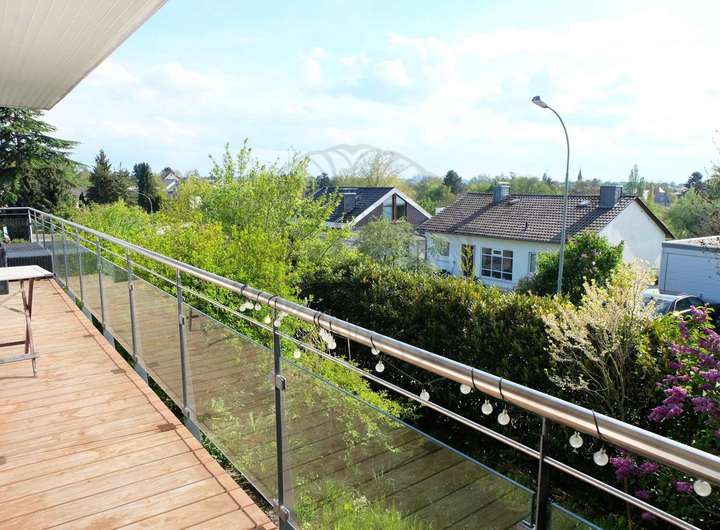 Vom Eingangsbereich mit großer Garderobe gelangt man links in den offenen, über 54m² großen Ess- und Wohnbereich mit offener Küche und Zugang zur Terrasse und zum großzügigen Süd-Balkon.