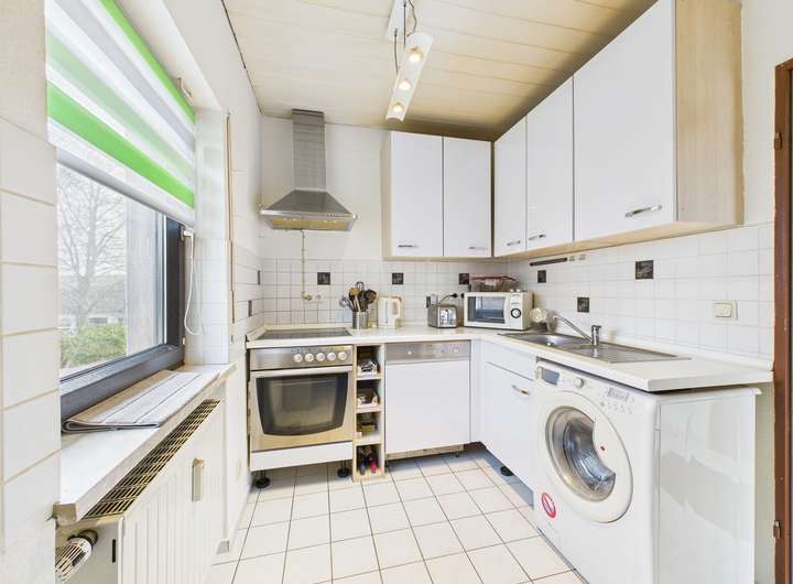 Beim Betreten werden Sie von einer großzügigen Diele empfangen. Das helle Wohnzimmer mit Zugang zur Terrasse und dem Garten schafft eine einladende Atmosphäre. Vom Wohnzimmer geht es weiter in den Essbereich. Direkt angrenzend befindet sich die geräumige Küche.