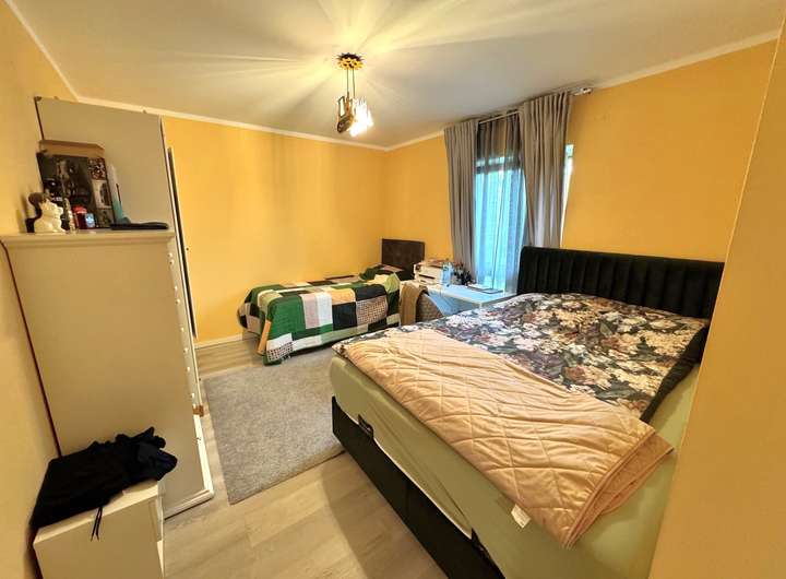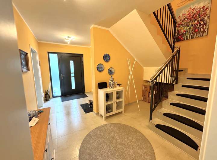 Das 2021 massiv erbaute Haus steht auf einem ca. 395 m² großen Grundstück in ruhiger, familienfreundlicher Lage. Das charmante Satteldach und die hochwertige Bauweise verleihen dem Haus ein modernes, zeitloses Erscheinungsbild. Dank zwei Vollgeschossen ohne Dachschrägen bieten alle Zimmer optimale Raumhöhe und großzügige Nutzflächen. Zusätzliche Ausbaureserve im Dachboden ist vorhanden (derzeit als Abstellraum genutzt).