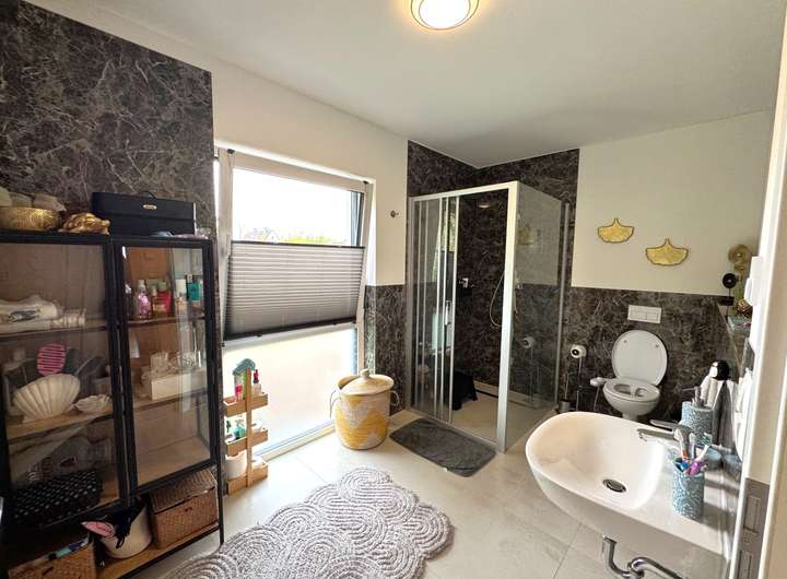 + Fußbodenheizung im gesamten Haus, betrieben über eine moderne, effiziente Wärmepumpe