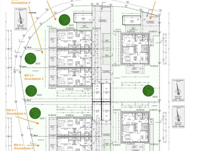 Für das gesamte, durchdacht geplante Bauvorhaben, liegt bereits ein genehmigter Vorbescheid vor. Dieser umfasst zwei großzügige Toscana-Häuser sowie zwei 3-Spänner mit jeweils zwei Reihenendhäusern und einem Reihenmittelhaus.