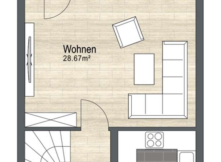 - Separate Küche (Öffnung zum Wohnzimmer möglich)