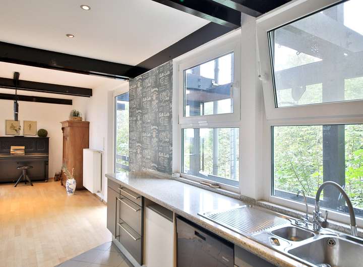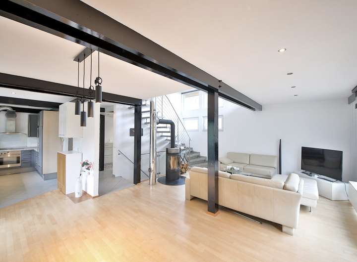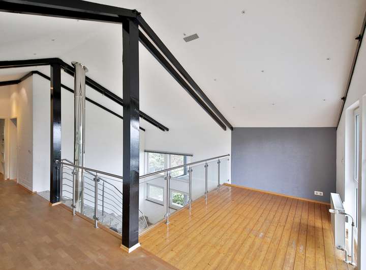 - Offenes Raumkonzept mit Galerie und großzügigen Fensterfronten