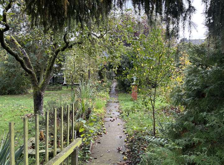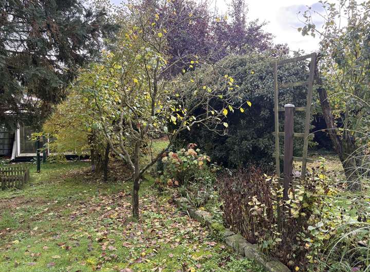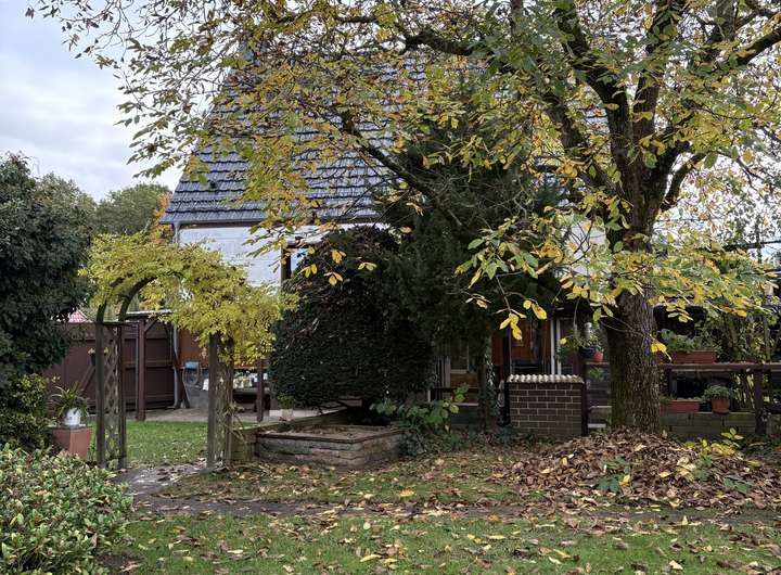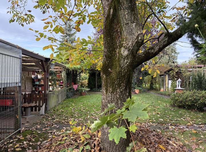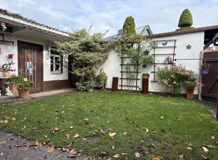 Ein Garten und eine Garage gehören ebenfalls zum Anwesen.