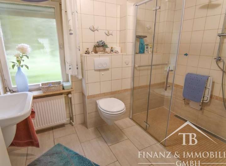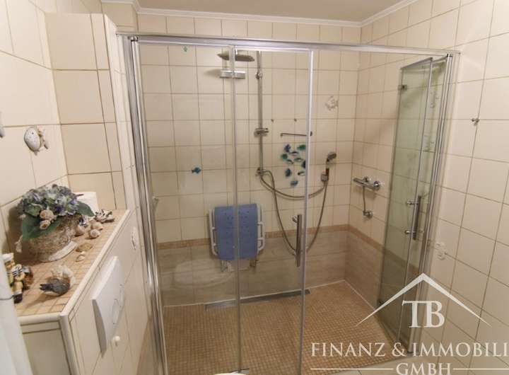 Im Erdgeschoss befindet sich eine schöne Diele von der aus ein Gäste-WC, die Garderobe sowie der Flur und die Wohnküche direkt erreicht werden. Neben der Küche befindet sich ein modernisiertes Badezimmer mit großer Dusche. Auch Menschen mit Mobilitätseinschränkungen kommen in diesem Bad wunderbar zurecht. Ebenfalls befindet sich ein großes Wohnzimmer im Erdgeschoss.