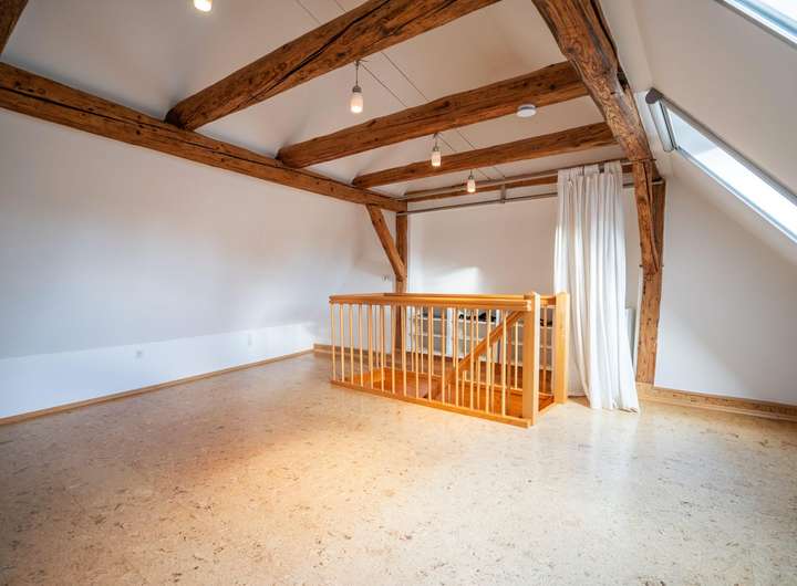 Die zweifachverglasten Holzfenster bieten eine gute Wärmedämmung und fügen sich harmonisch in das historische Erscheinungsbild ein. Die Gaszentralheizung (BJ 2018) sorgt für effiziente und zuverlässige Wärme im ganzen Haus.