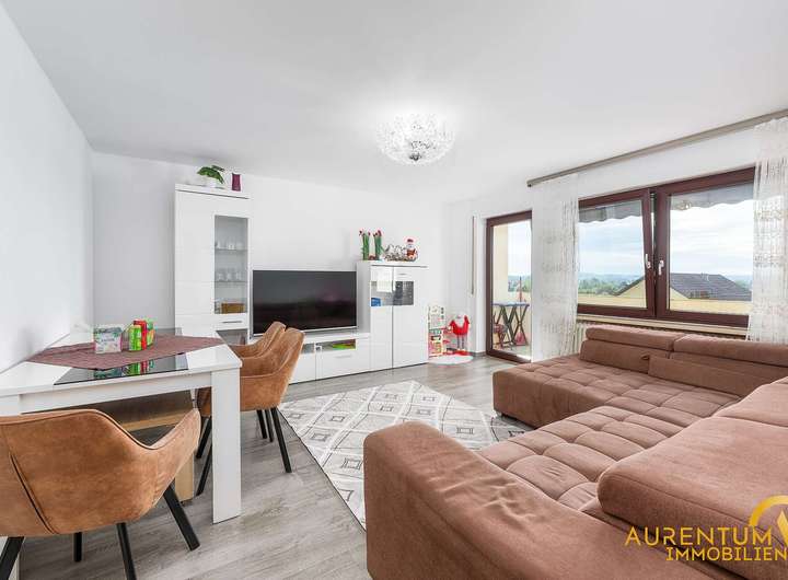 Der gut durchdachte Grundriss schafft eine angenehme Wohnatmosphäre. Vom großzügigen Eingangsbereich gelangen Sie direkt in die helle Wohnküche. Daran angrenzend befindet sich das weitläufige Wohnzimmer mit Zugang zum sonnigen Südbalkon – ideal für entspannte Stunden mit Weitblick. Das Schlafzimmer ist ruhig gelegen und bietet ausreichend Platz für ein Doppelbett und Schränke. Das modernisierte Badezimmer aus dem Jahr 2025 präsentiert sich zeitgemäß mit hellen Fliesen, Dusche, WC, Waschbecken und praktischem Waschmaschinenanschluss.