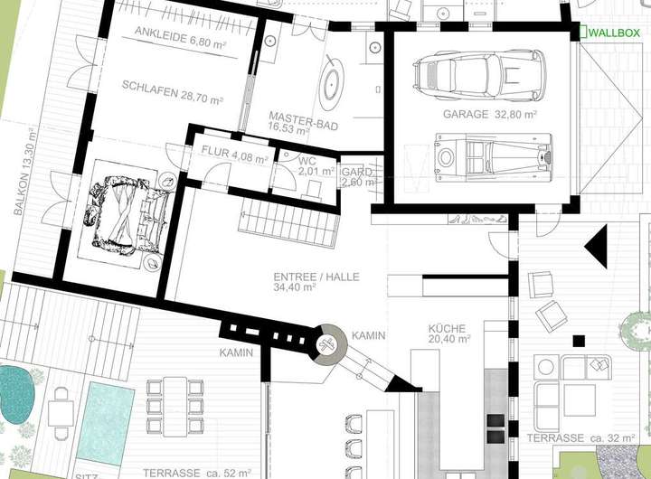 - Vollunterkellerung für flexible Nutzung: Hobby, Fitness, Spielen, Feiern, Kino, Wein, Gäste, Wäsche waschen und Aufbewahren