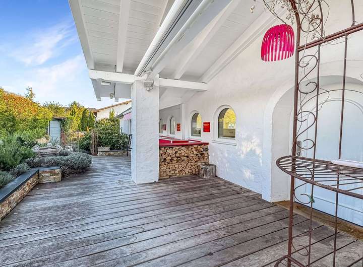 - im Chalet-Stil ausgebauter Wintergarten mit viel Licht, eigener Küche und Bad