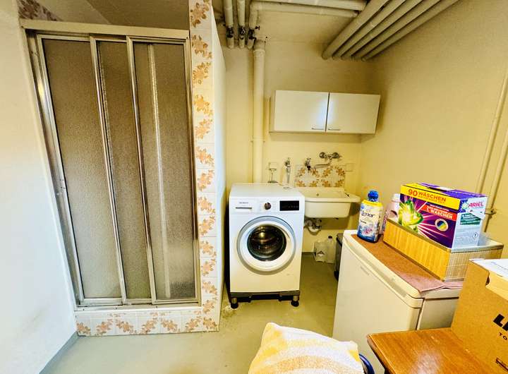 Im Souterrain verfügen Sie über einen großzügigen Hobbyraum mit Tageslichtfenster. Selbstverständlich befinden sich hier ebenfalls die üblichen Vorratsräume und die Waschküche, nicht zu vergessen die integrierte Doppelgarage mit elektr. Torantrieb.